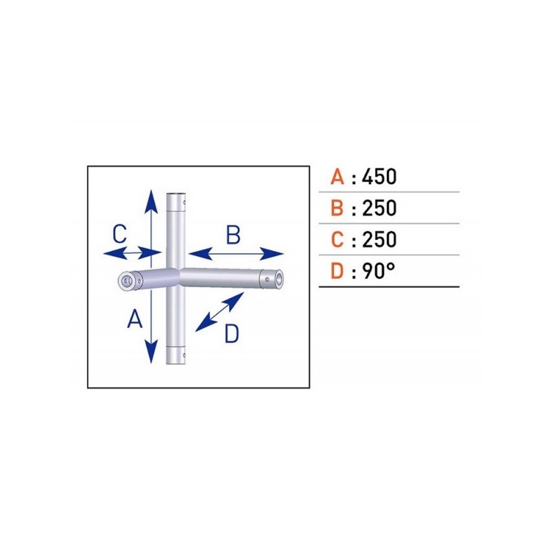 Angle 4 départs à plat 90° lg 0m45 x 0m45
