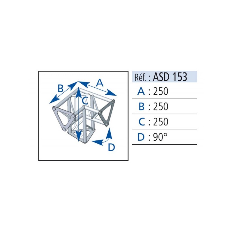 Charpente carrée. SÉRIE P Section de structure carrée en aluminium de 29 cm de côté, constituée d'un tube principal de 50 mm de diamètre et de 2 mm d'épaisseur, et d'un tube auxiliaire de 16 mm de diamètre et de 2 mm d'épaisseur. Il est disponible en sections de 0,5 m, 1 m, 2 m et 3 m, et en argent ou noir. Comprend 4 doubles cônes, 4 goupilles, 4...