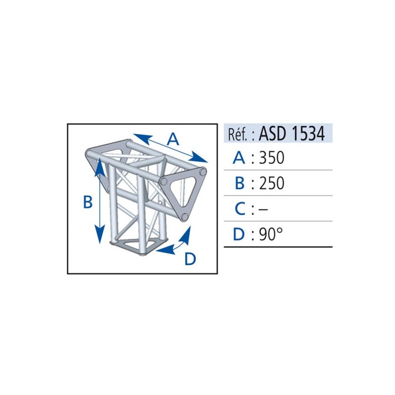 ANGLE ALU 290 3 DEPARTS 90° PIED GAUCHE FORTE CHARGE