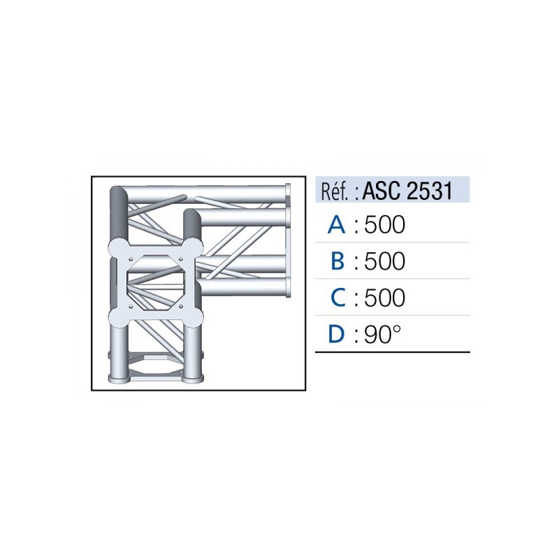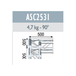Charpente carrée. SÉRIE P Section de structure carrée en aluminium de 29 cm de côté, constituée d'un tube principal de 50 mm de diamètre et de 2 mm d'épaisseur, et d'un tube auxiliaire de 16 mm de diamètre et de 2 mm d'épaisseur. Il est disponible en sections de 0,5 m, 1 m, 2 m et 3 m, et en argent ou noir. Comprend 4 doubles cônes, 4 goupilles, 4...