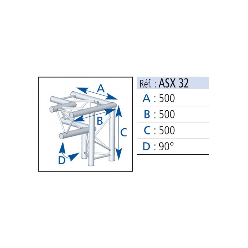 ANGLE 3D 90° SECTION 250 ALU CARRE