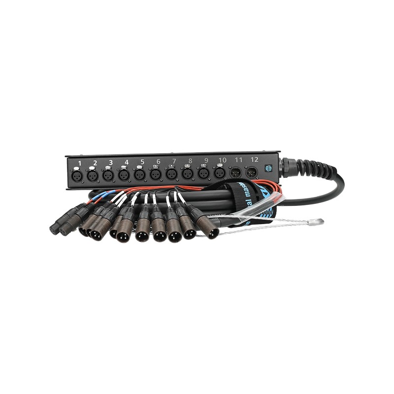 Sur boîtier : 10 XLR femelle + 2 mâle - Sur épanoui : 2 XLR mâle + 10 XLR femelle - Masse séparée