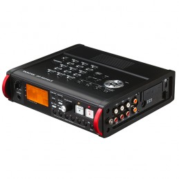 Le DR-680MKII met l’enregistrement multipiste portable à la portée de tous les musiciens : enregistrements live, sur site, Surround… Il permet d’enregistrer jusqu’à 8 pistes sur support carte SD, en qualité Broadcast WAV 96 kHz / 24 bits. Ses six entrées micro offrent jusqu’à 60 dB de gain et possèdent une alimentation fantôme, pour un enregistrement de qualité à partir de micros statiques. Les 8 pistes du DR-680MKII accueillent ces six signaux d’entrée analogiques plus ceux d’une entrée numérique S/PDIF stéréo. Pour l’écoute des signaux enregistrés, le DR-680MKII intègre une mixette, offrant un potentiomètre de niveau et de panoramique pour chaque entrée. Le mixage stéréo de sortie peut être enregistré en même temps que les six signaux analogiques séparés qui le composent, pour une lecture stéréo rapide des sons enregistrés. Le DR-680MKII intègre un haut-parleur, pour vérification des enregistrements sans casque. Le DR-680MKII peut également enregistrer en stéréo à une très haute définition de 192 kHz / 24 bits, pour des Masters de qualité audiophile, ou enregistrer jusqu’à quatre canaux au format MP3, occupant moins de place sur la carte, idéal pour l’enregistrement de réunions par exemple. Et vous pouvez relier deux DR-680MKII avec un câble Cascade, pour enregistrer jusqu’à 16 pistes avec alimentation sur batterie. Un adaptateur secteur est inclus.