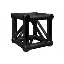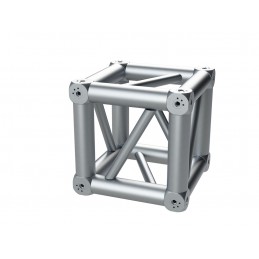 Cube multi-connexion avec huit prises en treillis en aluminium de 29 cm de côté. Fabriqué avec un tube de 50 mm de diamètre et 2 mm d'épaisseur. Avec connexions aux quatre coins. Couleur argent ou noir. SÉRIE E