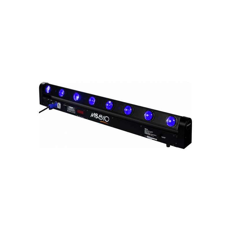Avec ses 8 LEDs, la barre MB810 offre de puissants faisceaux d'un angle de 2.5 degrés en RGBW. Profitez de 22 effets internes (balayage, stroboscopique) et de son angle TILT à 265 degrés.