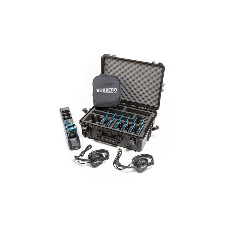 Kit comprenant les postes ceintures, le chargeur configurateur, 2 extensions, les casques MAE410, une valise étanche et des housses individuelles pour les casques. Autonomie : 12h.