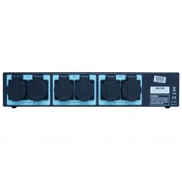 Distributeur de puissance équipé d'une connexion d'entrée triphasée de type Cetac de 16 A et de 6 connecteurs de sortie de type Schucko de 16 A chacun. Pour afficher les niveaux de chaque phase, il dispose d'un voltmètre et d'un ampèremètre numériques sur sa face avant. Il intègre également un disjoncteur de protection par phase et une prise supplémentaire de type F (schuko) pour l'alimentation auxiliaire.