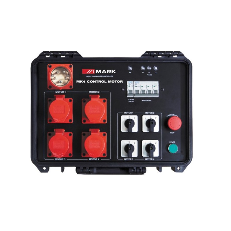 CONTRÔLE DU MOTEUR MK 4 Commande pour 4 moteurs triphasés 16 A. Installé dans une mallette de transport étanche.