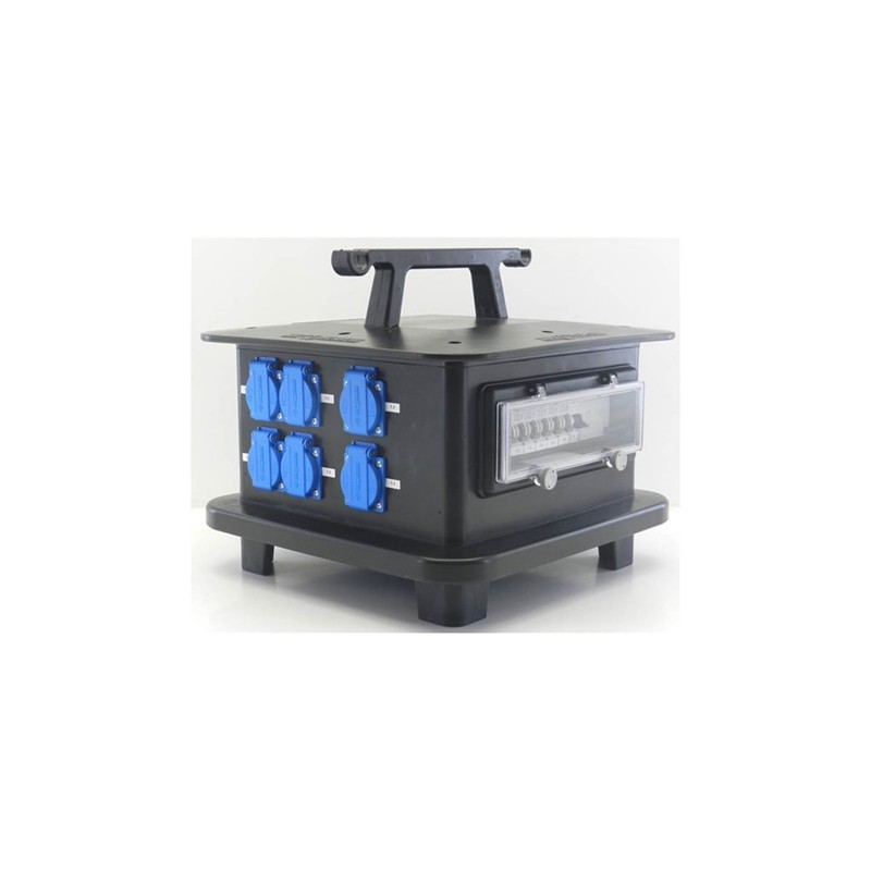 Caractéristiques : Entrée : fiche CEE 32A 5p sur câble 1,5m. Sorties : redépart CEE 32A 5p, 6 fiches françaises 16A, 1 prises SOCAet 1 fiches Harting 16.Protection : Interdif 4x32A, 30mA et 6 disj 16A. Entrée ''In'' Alimentation : P17 32 A Tétrapolaire Sortie ''Out'' Alimentation : 6 x PC 10/16 A NF ; P17 32 A Tétrapolaire ; Socapex ; Harting Poids (net)...