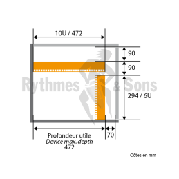 La façade est équipée de supports adaptés à l'installation de divers équipements 19", tels que des lecteurs, amplificateurs, processeurs d'effets ou autres accessoires essentiels. Elle permet la mise en oeuvre rapide d'un système complet avec un encombrement minimum.Cette régie 6Ux10U est compatible avec diverses tables de mixage, notamment les modèles suivants :