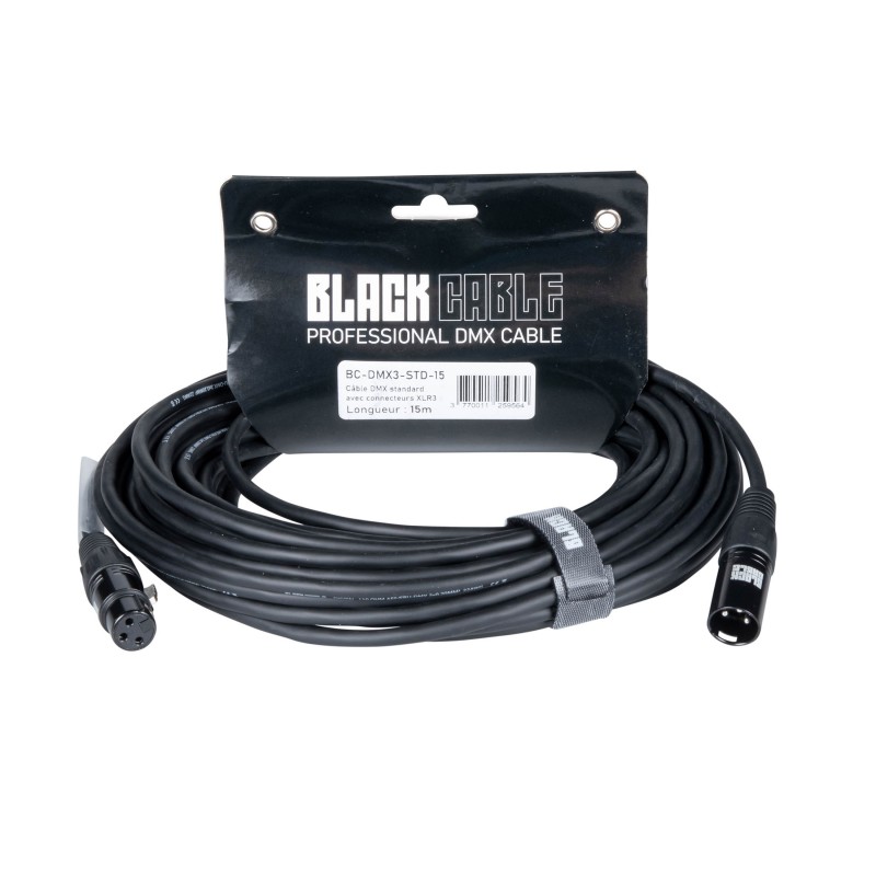 Cordon DMX 3 points mâle-femelle standard - Longueur 15m - BLACKCABLE