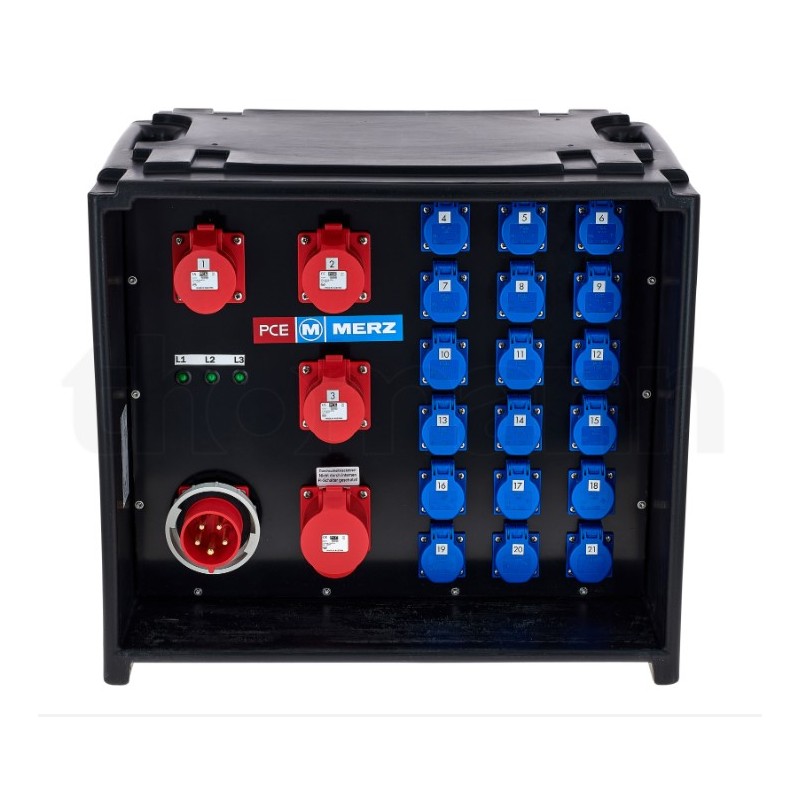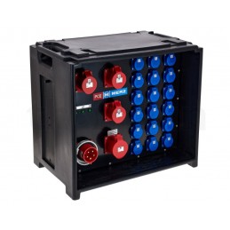Caractéristiques : Entrée : fiche CEE 63A 5p sur câble 1,5m. Sorties : redépart CEE 63A 5p, 12 fiches françaises 16A, 2 prises SOCAet 2 fiches Harting 16.Protection : Interdif 4x63A, 30mA et 12 disj 16A. Entrée ''In'' Alimentation : P17 63 A Tétrapolaire Sortie ''Out'' Alimentation : 12 x PC 10/1 6A NF ; P17 63 A Tétrapolaire ; Socapex ; Harting Poids...