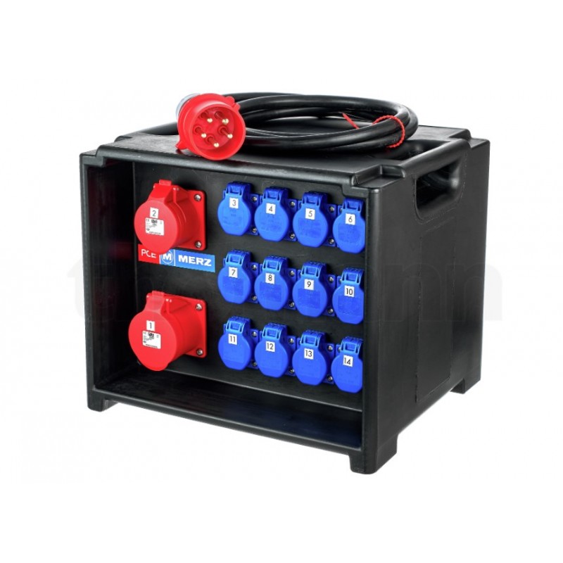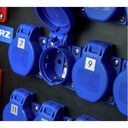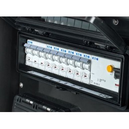 + FABRIQUE EN EUROPE Entrées : Powerlock 3P+N+T. Sorties : 3 x P17 63A 5p, 3 x P17 32A 5p, 6 x P17 32A 3p. Protec : disj 4P 250A, disj 4P 63A 30mA, disj 4P 32A 30mA, disj P+N 32A 30mA. Plateau à roulette en option L. Entrée ''In'' Alimentation : Powerlock 400 A Sortie ''Out'' Alimentation : P17 32 A Monophasé ; P17 32 A Tétrapolaire ; P17 63 A...