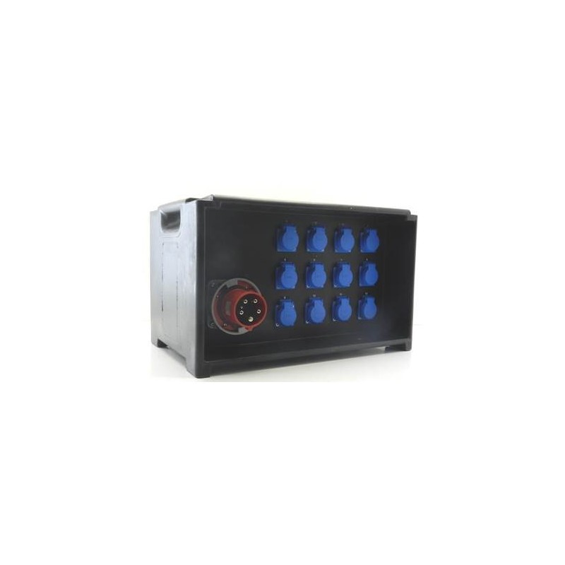 + FABRIQUE EN EUROPE Entrée : embase noire P17 63A 5p. Sorties : 6 embases noires P17 32A 3p. Protection : disjoncteur principal 4P 63A avec différentiel 30 mA, disjoncteurs P+N 32A. Plateau à roulette en option S. Entrée ''In'' Alimentation : P17 63 A Tétrapolaire Sortie ''Out'' Alimentation : P17 32 A Monophasé Poids (net) : 25 kg Dimensions (hors...