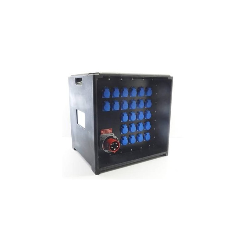 Caractéristiques : Entrée : fiche CEE 63A 5p sur câble 1,5m. Sorties : redépart CEE 63A 5p, 12 fiches françaises 16A, 2 prises SOCAet 2 fiches Harting 16.Protection : Interdif 4x63A, 30mA et 12 disj 16A. Entrée ''In'' Alimentation : P17 63 A Tétrapolaire Sortie ''Out'' Alimentation : 12 x PC 10/1 6A NF ; P17 63 A Tétrapolaire ; Socapex ; Harting Poids...
