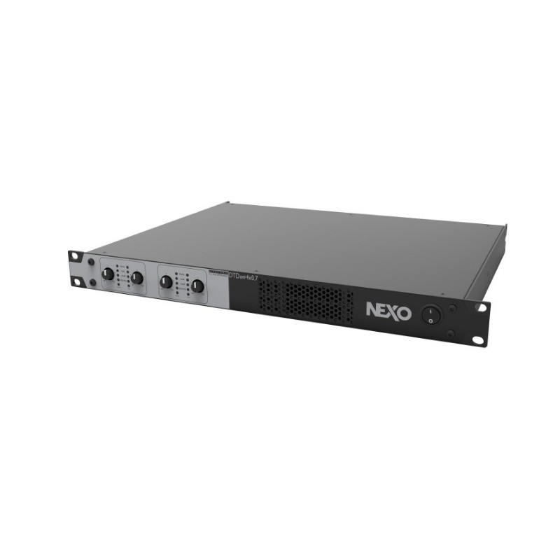 La gamme DTDAMP se compose de deux modèles d’amplificateurs 4 canaux, en un boîtier de 1 U de rack, et ne pesant que 7,5 kg. Le DTD Controller constitue une solution très efficace pour le traitement de la plupart des enceintes NEXO, de la Série ID à notre célèbre PS15, de renommée mondiale. En le complétant par un DTDAMP, vous êtes sûr de bénéficier d’une puissance nécessaire pour vos enceintes NEXO ; cette combinaison offre un look cohérent et offre une grande facilité d’utilisation. L’ensemble DTD + DTDAMP pèse moins de 10 kg, et assure le traitement et l’alimentation d’un système composé de, par exemple, 2 enceintes NEXO et 2 subs NEXO. Ces performances sont possibles grâce à l’utilisation de composants hautement intégrés, implantés en haute densité et grâce à une conception efficace (radiateurs plus petits) tant pour la partie alimentation que pour les étages d’amplification. Le DTDAMP offre toutes les fonctions de suivi et de protection indispensables à un amplificateur de touring professionnel : tension secteur trop faible ou trop élevée, tension de sortie trop élevée ou présence de composante continue sur un canal, court-circuit, etc. Le système de refroidissement à vitesse variable assure une température interne de fonctionnement correcte ; l’air circule de l’avant vers l’arrière, pour assurer la compatibilité dans des racks hébergeant simultanément des DTDAMP et des NXAMP, notre modèle haut de gamme, dans de grosses installations. Une fois vos enceintes NEXO sélectionnées dans le DTD Controller, vous pouvez utiliser, dans la plupart des cas, votre système DTD +DTDAMP sans devoir modifier le paramétrage. Utilisé avec le contrôleur NEXO DTD, le DTDAMP constitue une solution parfaite pour la location « comptoir » ou les cas de figure où l’utilisateur n’est pas un expert, mais désire tirer le meilleur résultat possible de son système de sonorisation NEXO.